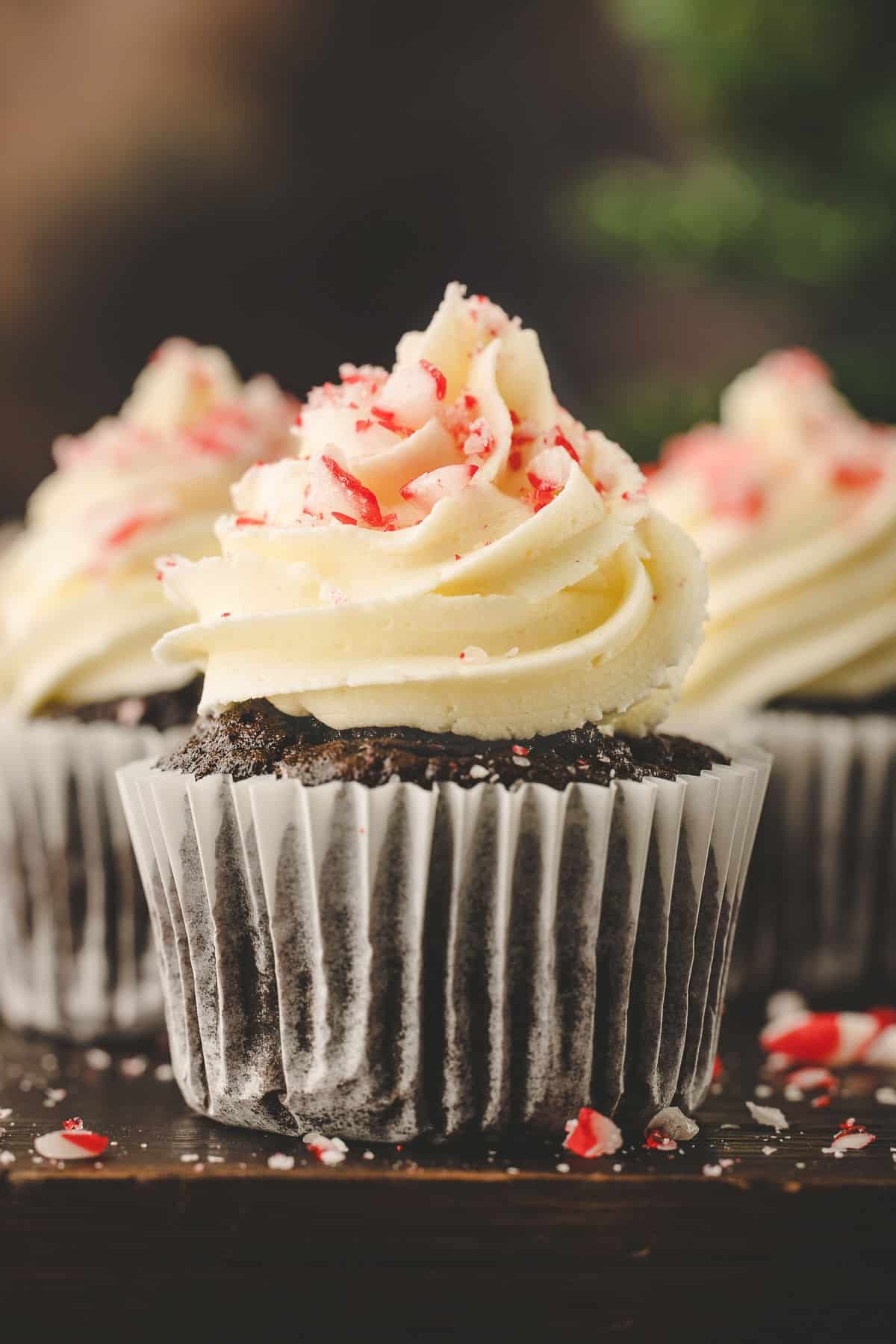 Les cupcakes au chocolat à la menthe poivrée sont le dessert parfait pour les fêtes ! Ces cupcakes moites au chocolat sont adaptés de ma recette populaire de cupcakes au chocolat.